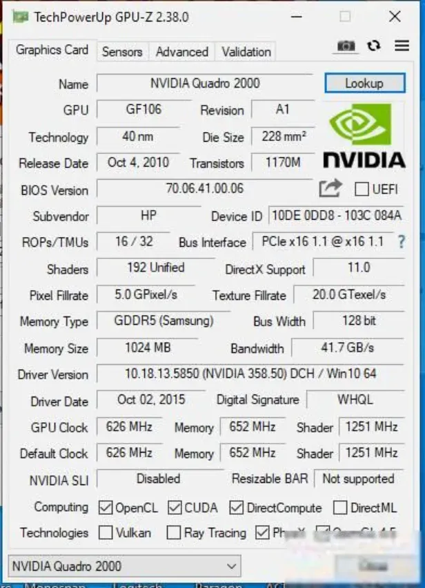 Дискретна відеокарта nVidia Quadro 2000, 1 GB GDDR5, 128-bit / 2x DP, 1x DVI б/в