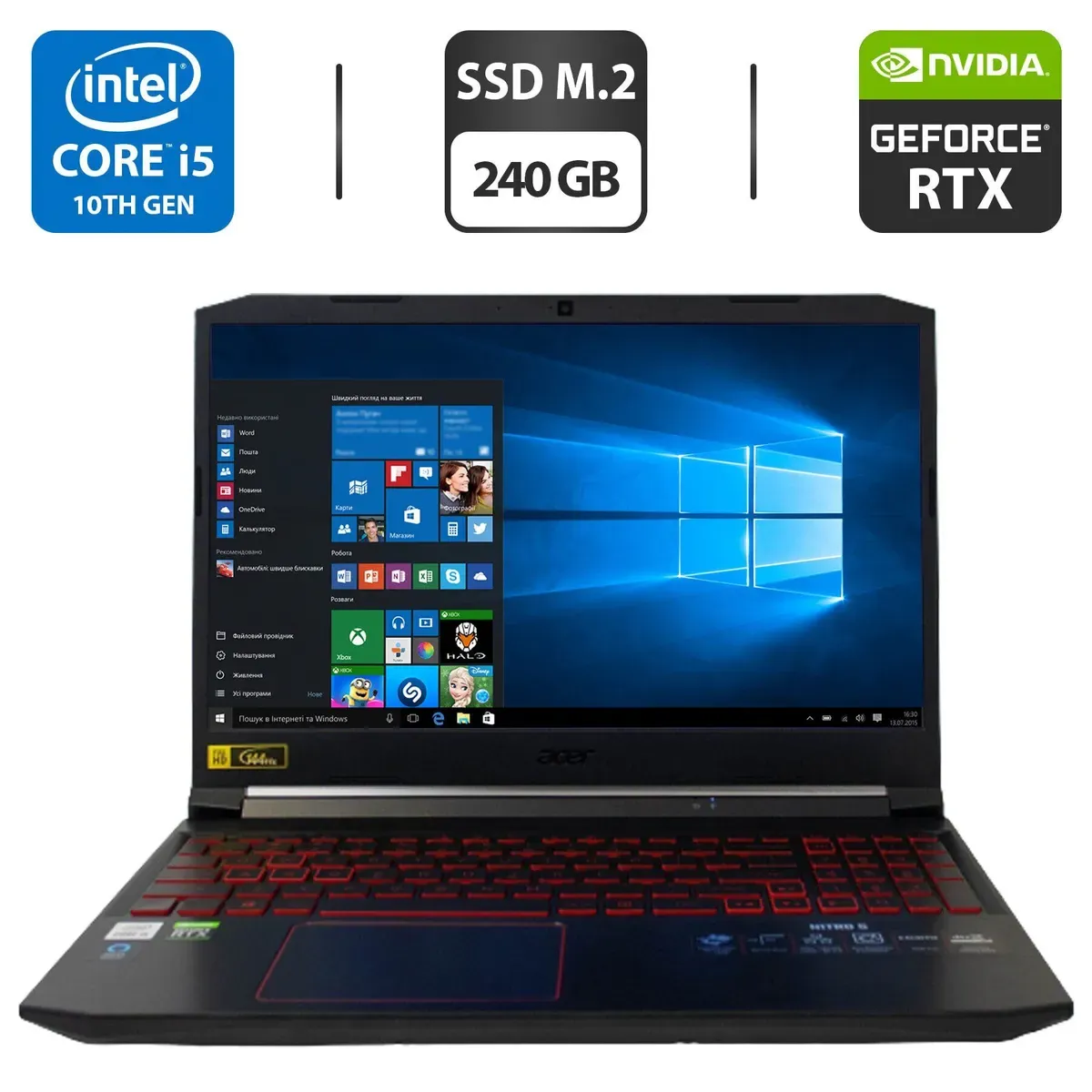 Ігровий ноутбук Acer / 15.6" IPS / Core i5-10300H (4(8) ядра по 2.5-4.5 GHz) / 8GB DDR4 / 240GB SSD M.2 / GeForce RTX 3050, 4GB GDDR6, 128bit / WebCam / HDMI б/в