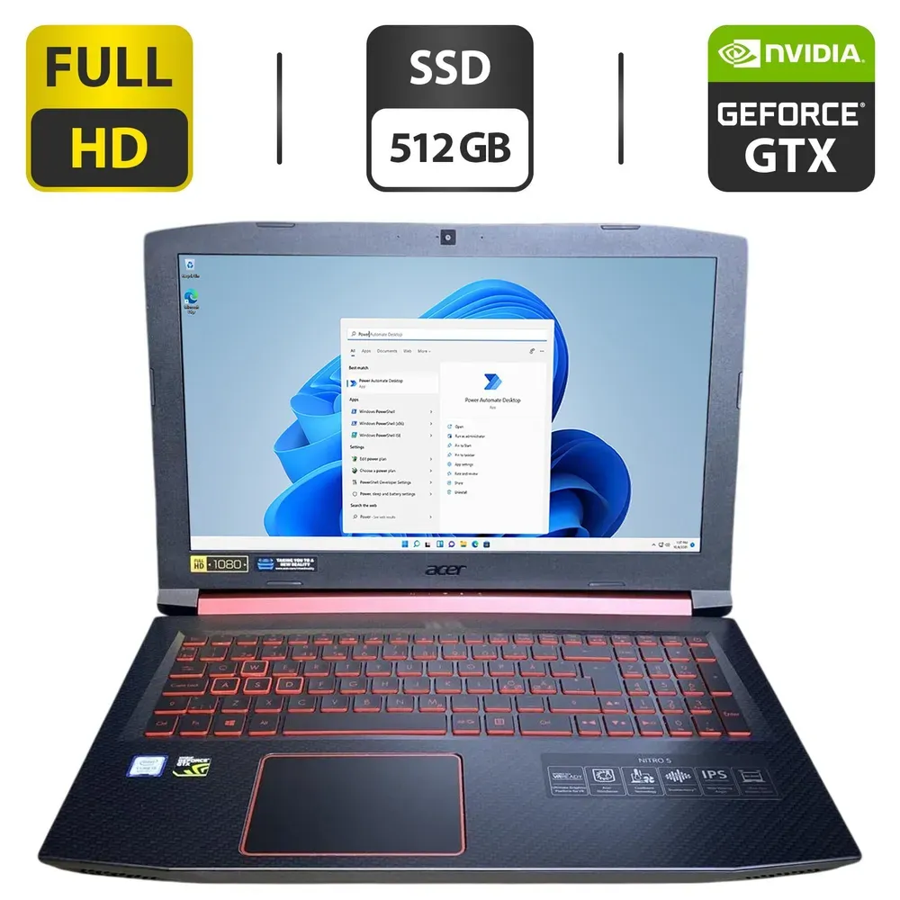 Ігровий ноутбук Acer Nitro 5 / 15.6" (1920x1080) IPS / Intel Core i5-8300H (4 (8) ядра по 2.3 - 4.0 GHz) / 8 GB DDR4 / 512 GB SSD / nVidia GeForce GTX 1060, 6 GB GDDR5, 192-bit / WebCam б/в