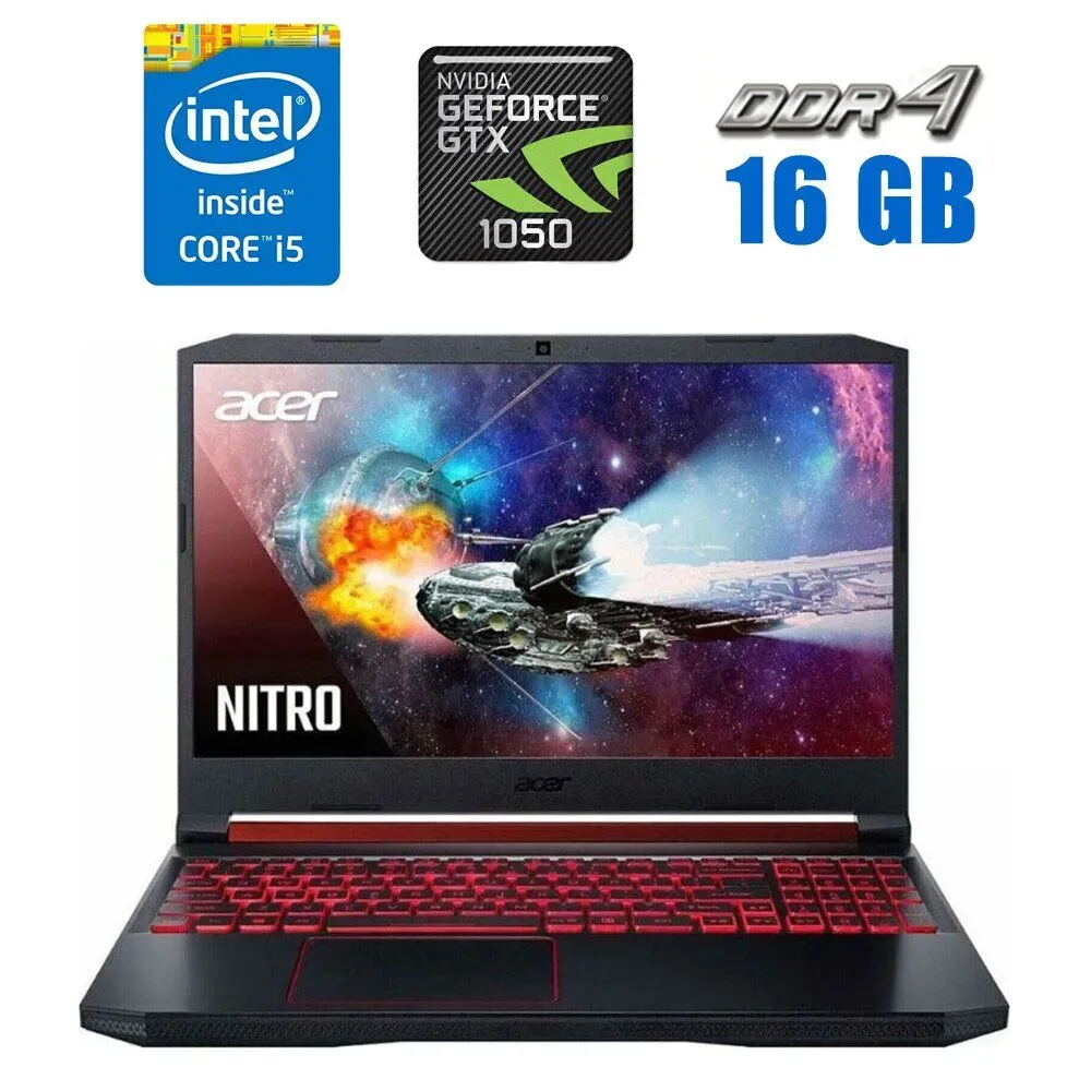 Ігровий ноутбук Acer Nitro 5 AN515-54-51M5 / 15.6" (1920x1080) IPS / Intel Core i5-9300H (4 (8) ядра по 2.4 - 4.1 GHz) / 16 GB DDR4 / 480 GB SSD / nVidia GeForce GTX 1050, 3 GB GDDR5, 128-bit / WebCam б/в