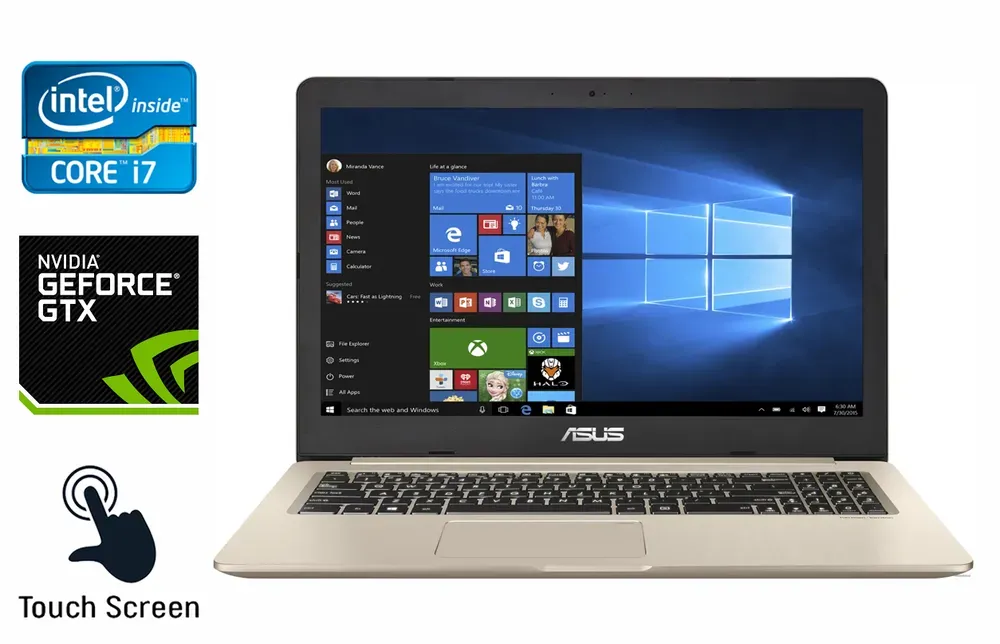 Ігровий ноутбук Asus N580V з екраном 15.6" (1920x1080) IPS Touch на базі процесора Intel Core i7-7700HQ і оперативною пам'яттю 16 GB DDR4, оснащений дискретною відеокартою nVidia GeForce GTX 1050 4 GB для ігор і розваг