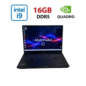 Ігровий ноутбук Asus ProArt Studiobook / 16" (2560x1600) OLED Touch / Intel Core i9-13980HX (24 (32) ядра по 2,2 - 5,5 ГГц) / 16 ГБ DDR5 / 512 ГБ SSD NVMe / nVidia Quadro RTX 3000, 6 ГБ GDDR6, 192-bit / WebCam б/в