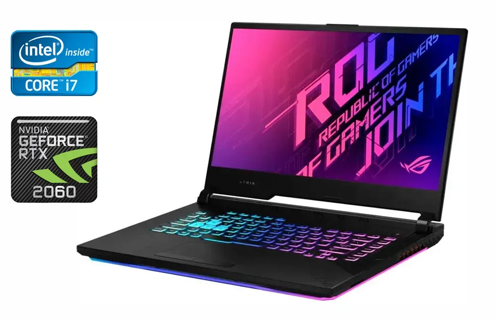 Ігровий ноутбук Asus ROG Strix G512L з екраном 15.6" (1920x1080) IPS на базі процесора Intel Core i7-10870H і оперативною пам'яттю 16 GB DDR4, оснащений дискретною відеокартою nVidia GeForce RTX 2060 6 GB для ігор і розваг