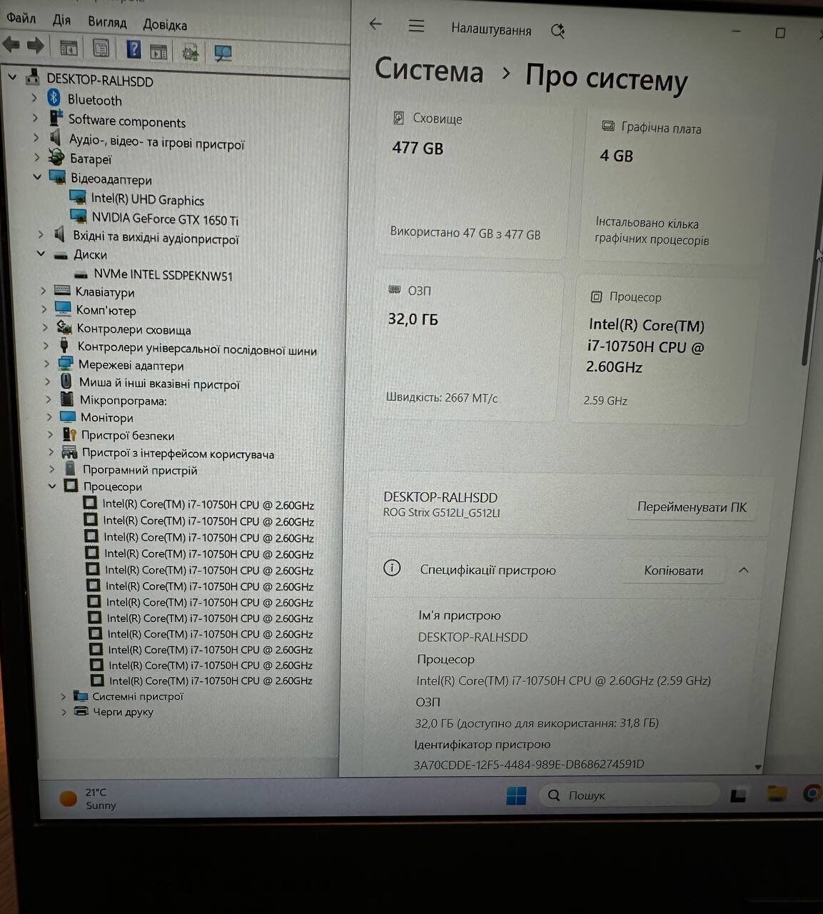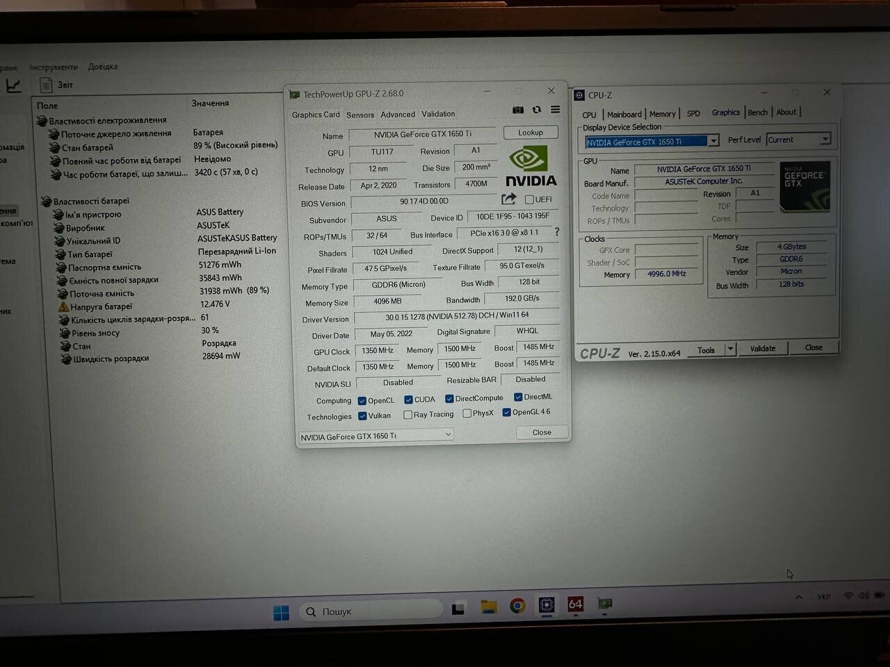 - Графіка: дискретна nVidia GeForce GTX 1650 Ti, 4 GB GDDR6, 128-bit