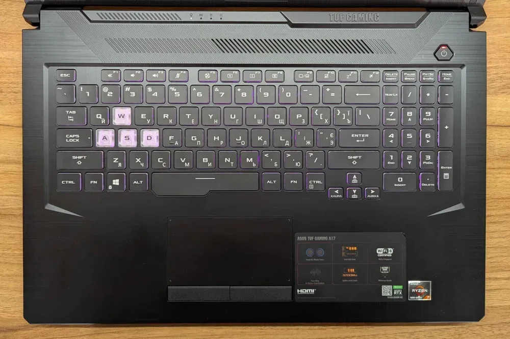 Ігровий ноутбук Asus TUF 706Q / 17.3" (1920x1080) IPS / AMD Ryzen 7 5800H (8 (16) ядер по 3.2 - 4.4 GHz) / 16 GB DDR4 / 512 GB SSD / nVidia GeForce RTX 3050 Ti, 4 GB GDDR6, 128-bit / WebCam / Windows 11 б/в