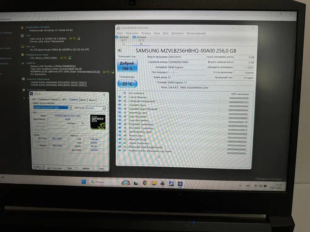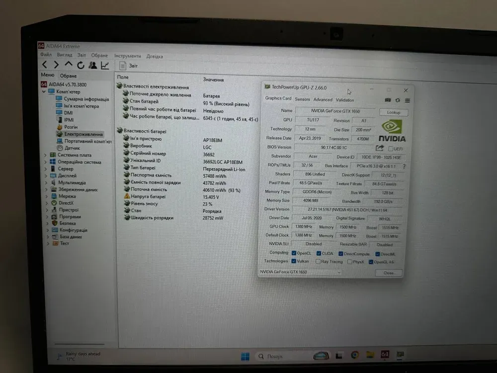 - Графіка: дискретна nVidia GeForce GTX 1650, 4 GB GDDR6, 128-bit