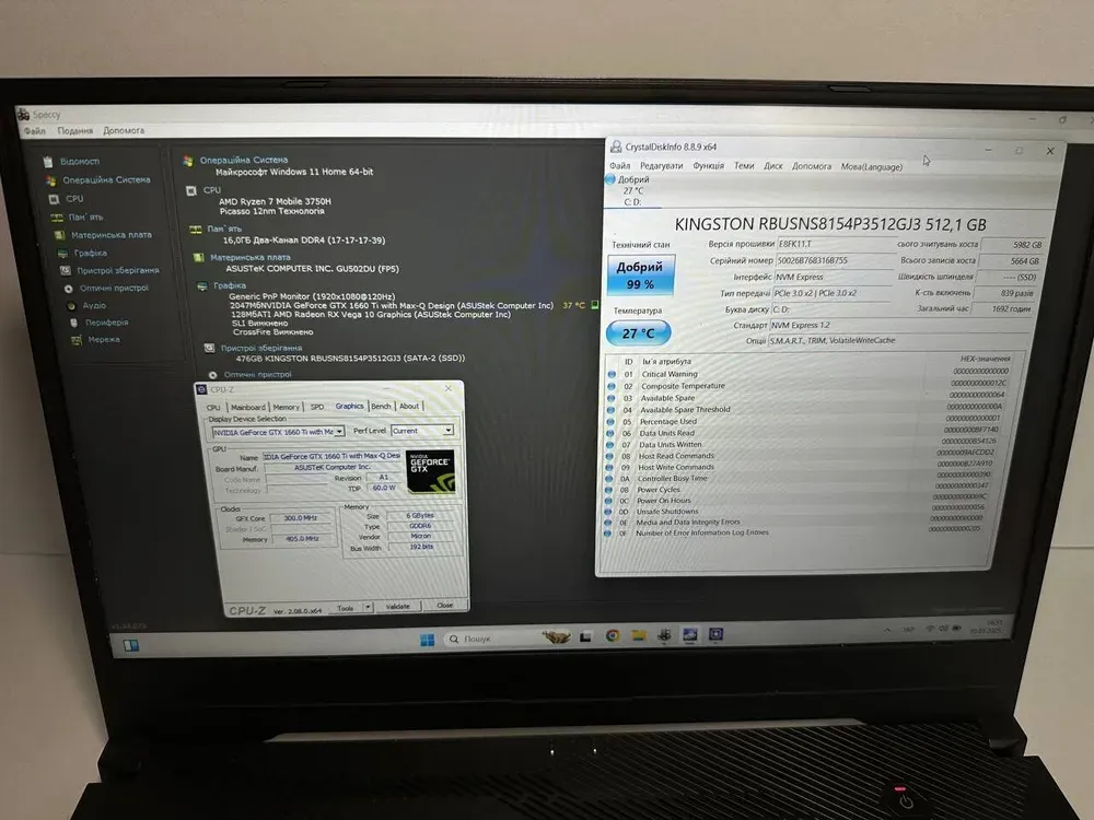 - Графіка: дискретна nVidia GeForce GTX 1660 Ti Max-Q, 6 GB GDDR6, 192-bit
