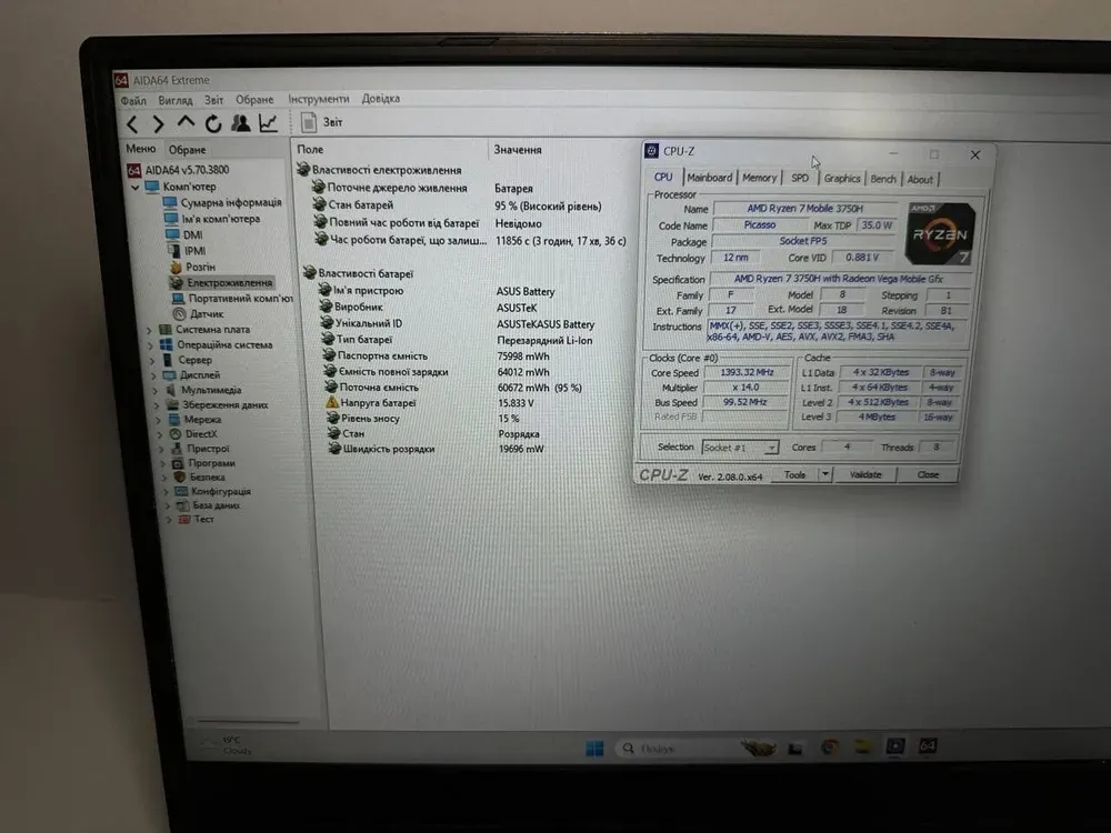 - Процесор: AMD Ryzen 7 3750H (4 (8) ядра по 2.3 - 4.0 GHz), 4 MB Cache