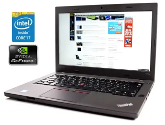 Ігровий ноутбук Б-клас Lenovo ThinkPad T470p / 14" (2560x1440) IPS / Intel Core i7-7820HQ (4 (8) ядра по 2.9 - 3.9 GHz) / 16 GB DDR4 / 512 GB SSD / nVidia GeForce 940MX, 2 GB GDDR5, 64-bit / WebCam / Win 10 Pro б/в