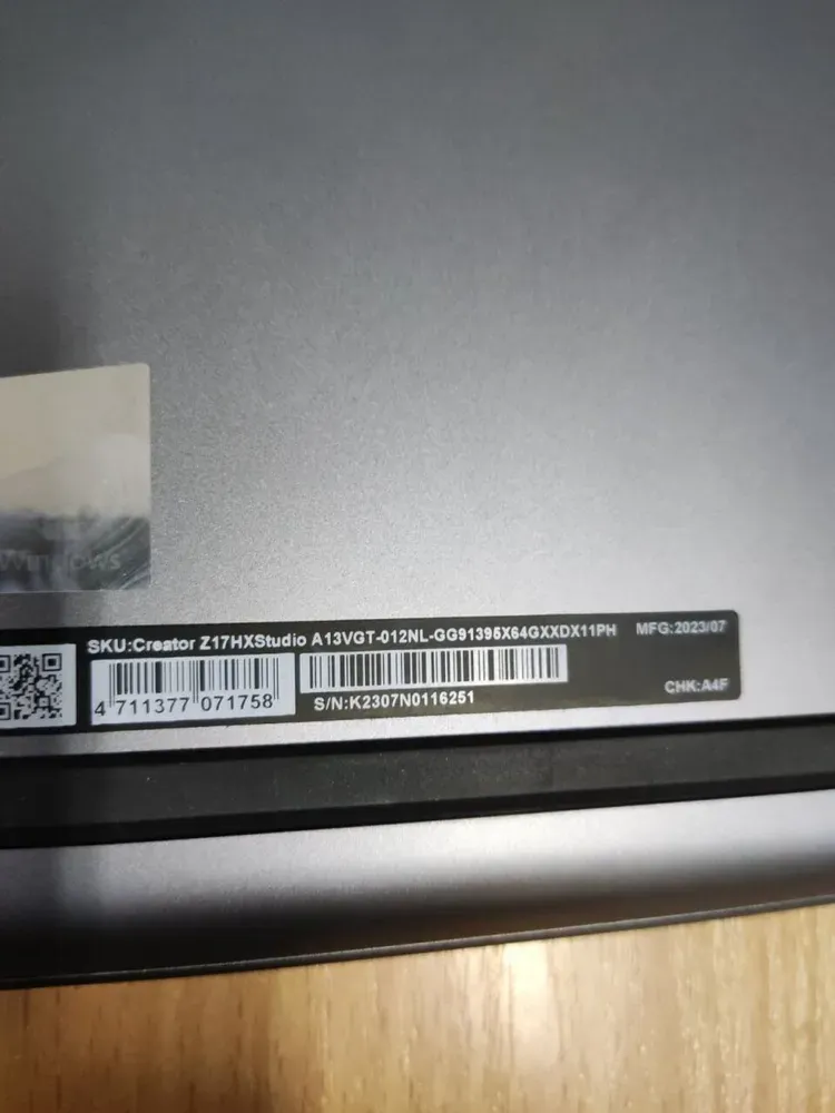 - Модель: MSI Creator Z17 HX Studio A13VGT MSI Creator Z17 HX Studio A13VGT