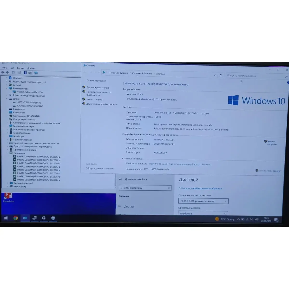 - Графіка: дискретна nVidia GeForce GTX 1070, 8 GB GDDR5, 256-bit