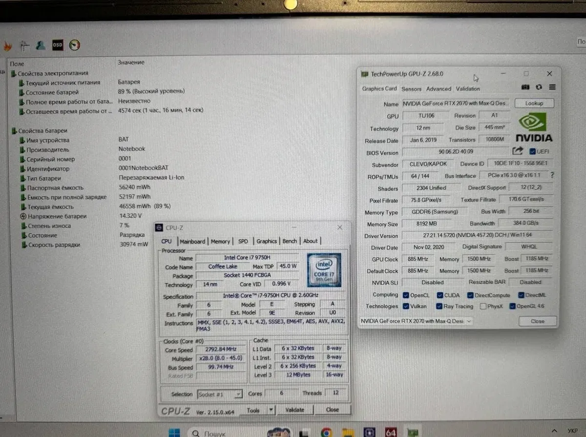 - Графіка: дискретна nVidia GeForce RTX 2070 Max-Q, 8 GB GDDR6, 256-bit