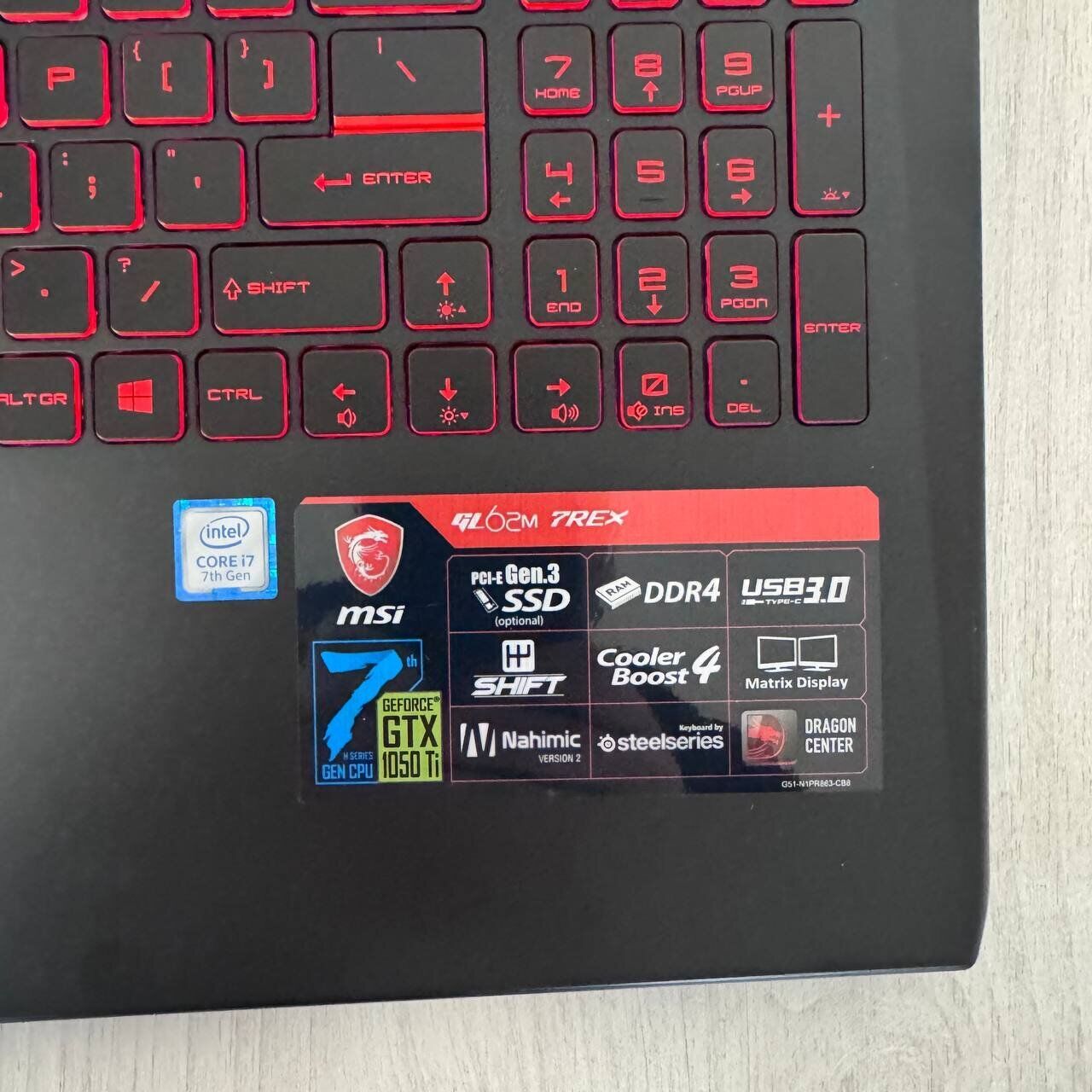 Ігровий ноутбук Б-класу MSI GL62M 7REX з екраном 15,6" (1920x1080) TN на базі процесора Intel Core i7-7700HQ і дискретної відеокарти nVidia GeForce GTX 1050 Ti 4 GB для ігор і роботи з мультимедіа