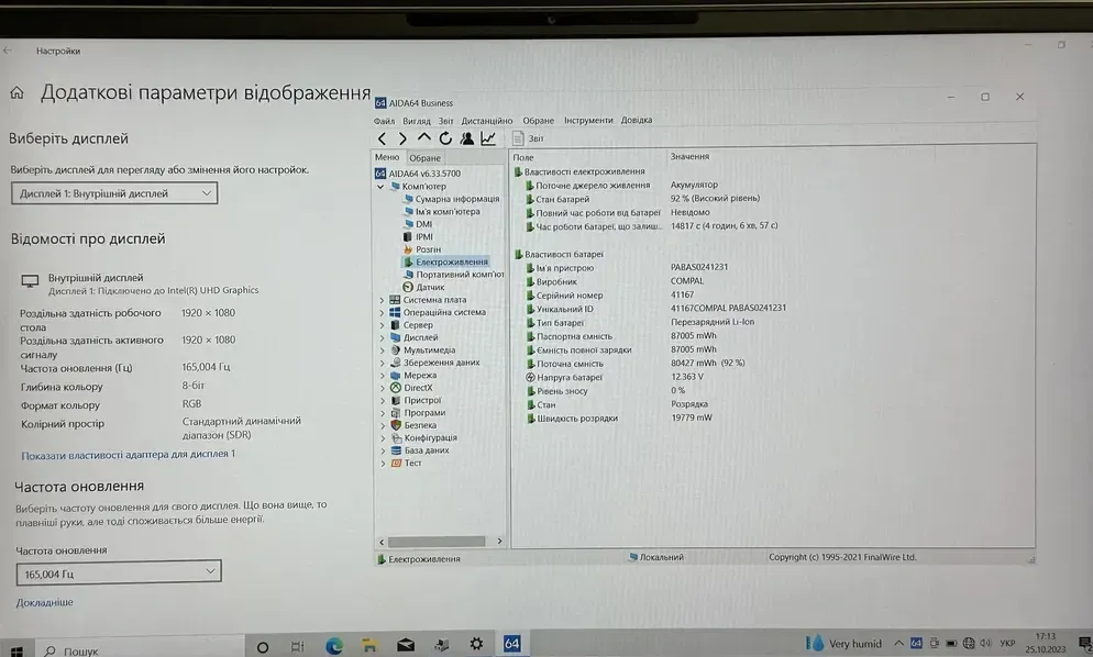 - Екран (діагональ, роздільна здатність, тип матриці): 15.6" (1920x1080) IPS матовий 165 Hz