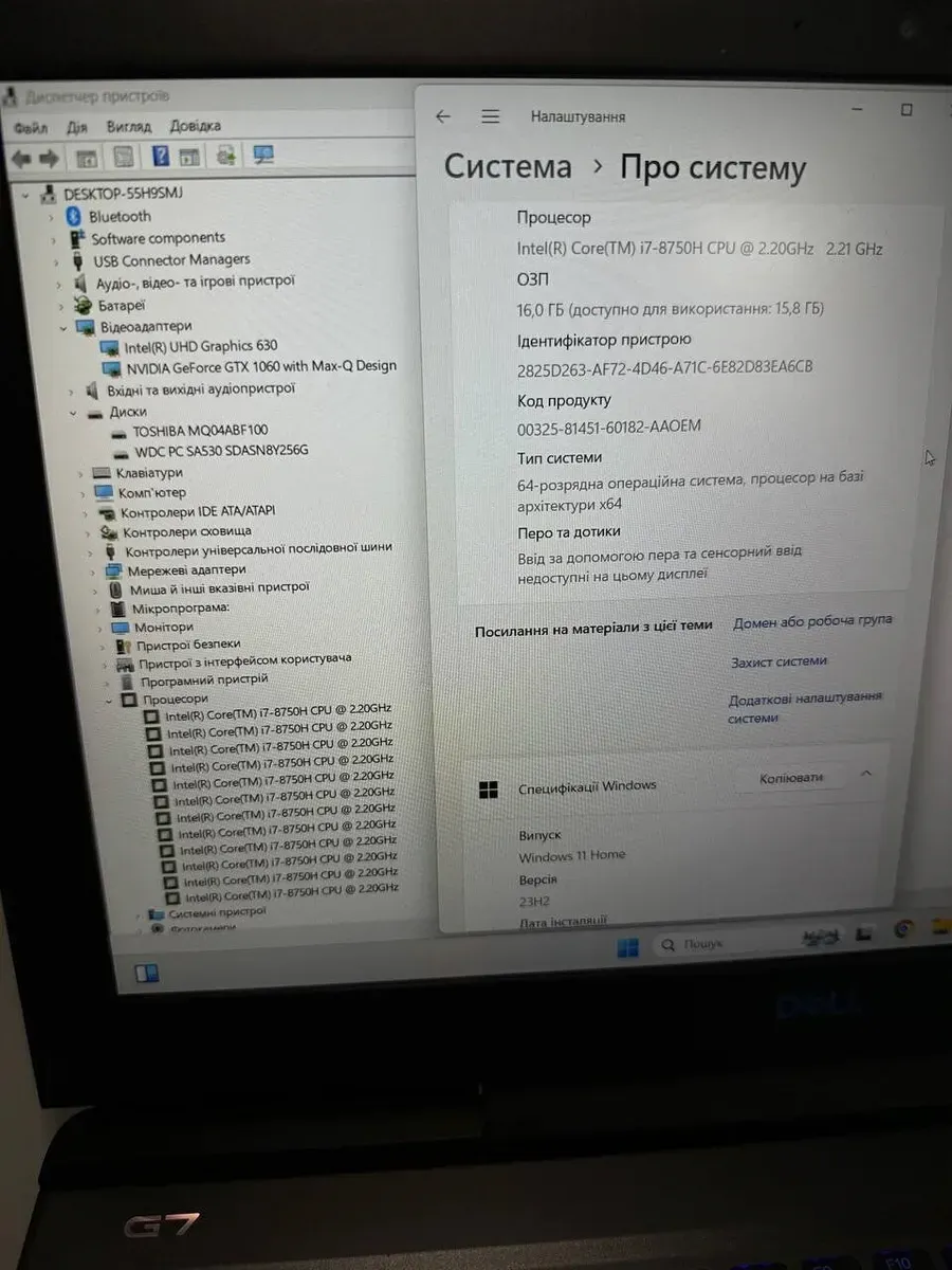 - Процесор: Intel Core i7-8750H (6 (12) ядер по 2.2 - 4.1 GHz), 9 MB Smart Cach