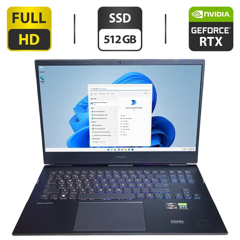 Ігровий ноутбук HP Omen 16 / 16.1" (1920x1080) IPS / AMD Ryzen 7 5800H (8 (16) ядер по 3.2 - 4.4 GHz) / 16 GB DDR5 / 512 GB SSD / nVidia GeForce RTX 3070, 8 GB GDDR6, 256-bit / WebCam б/в