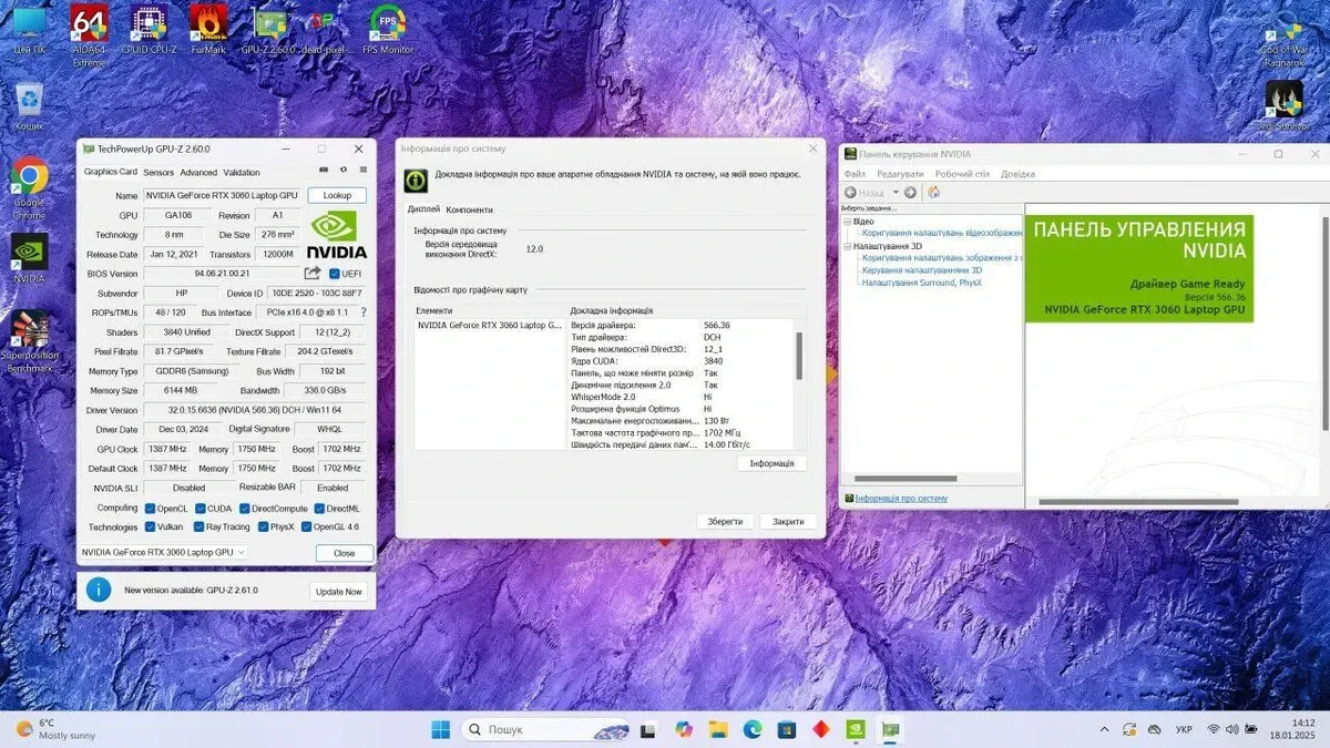 - Графіка: дискретна nVidia GeForce RTX 3060, 6 GB GDDR6, 192-bit