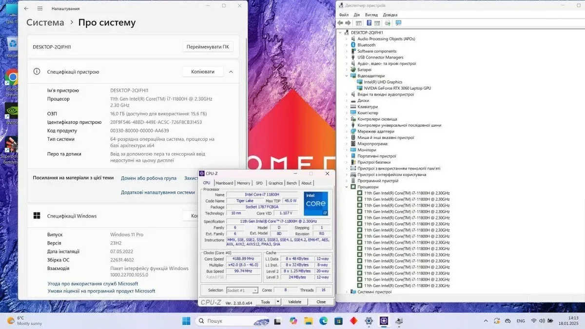 - Процесор: Intel Core i7-11800H (8 (16) ядер по 2.3 - 4.6 GHz), 24 MB Smart Cache