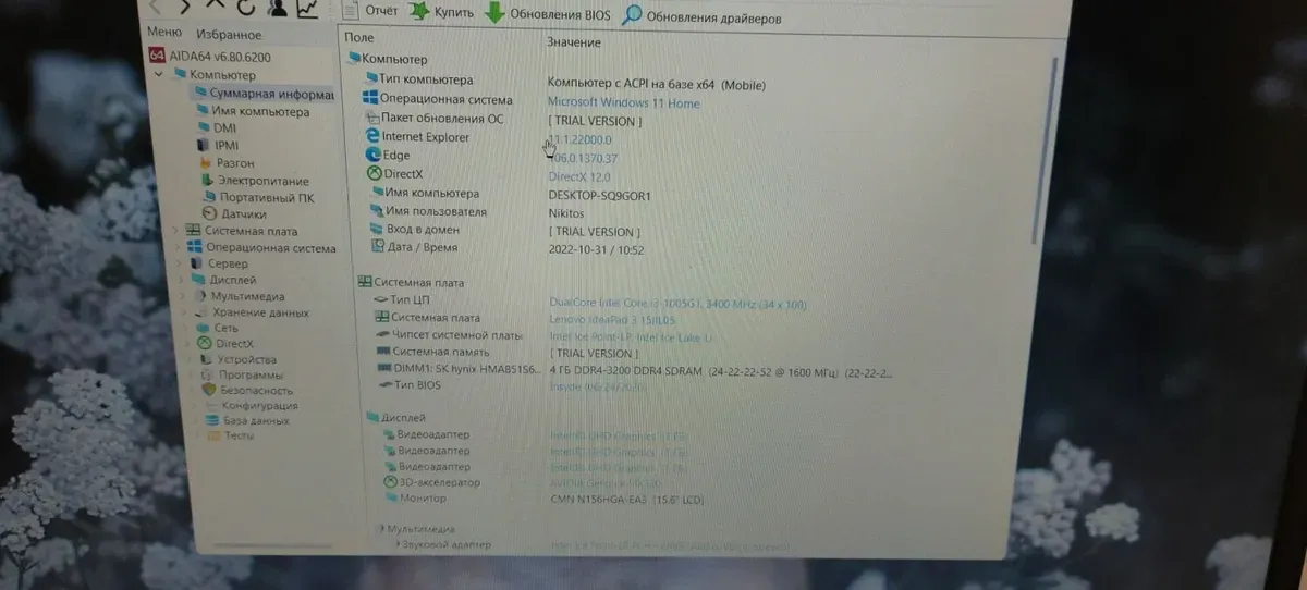 - Модель: Lenovo IdeaPad 3 15IIL05