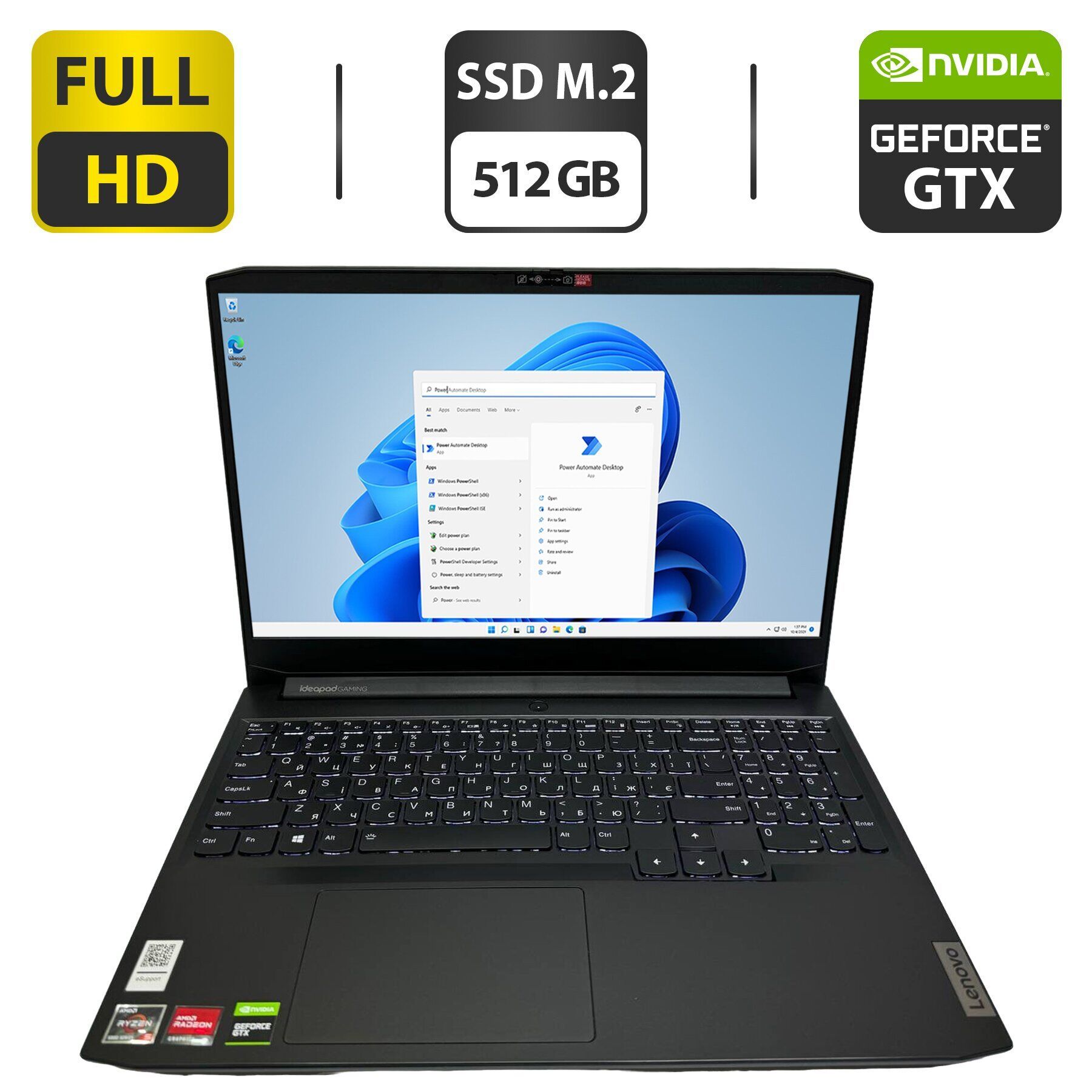 Ігровий ноутбук Lenovo IdeaPad Gaming 3-15 / 15.6" (1920x1080) IPS / AMD Ryzen 5 5600H (6 (12) ядер по 3.3 - 4.2 GHz) / 16 GB DDR4 / 512 GB SSD M.2 / nVidia GeForce GTX 1650, 4 GB GDDR5, 128-bit / WebCam / HDMI б/в