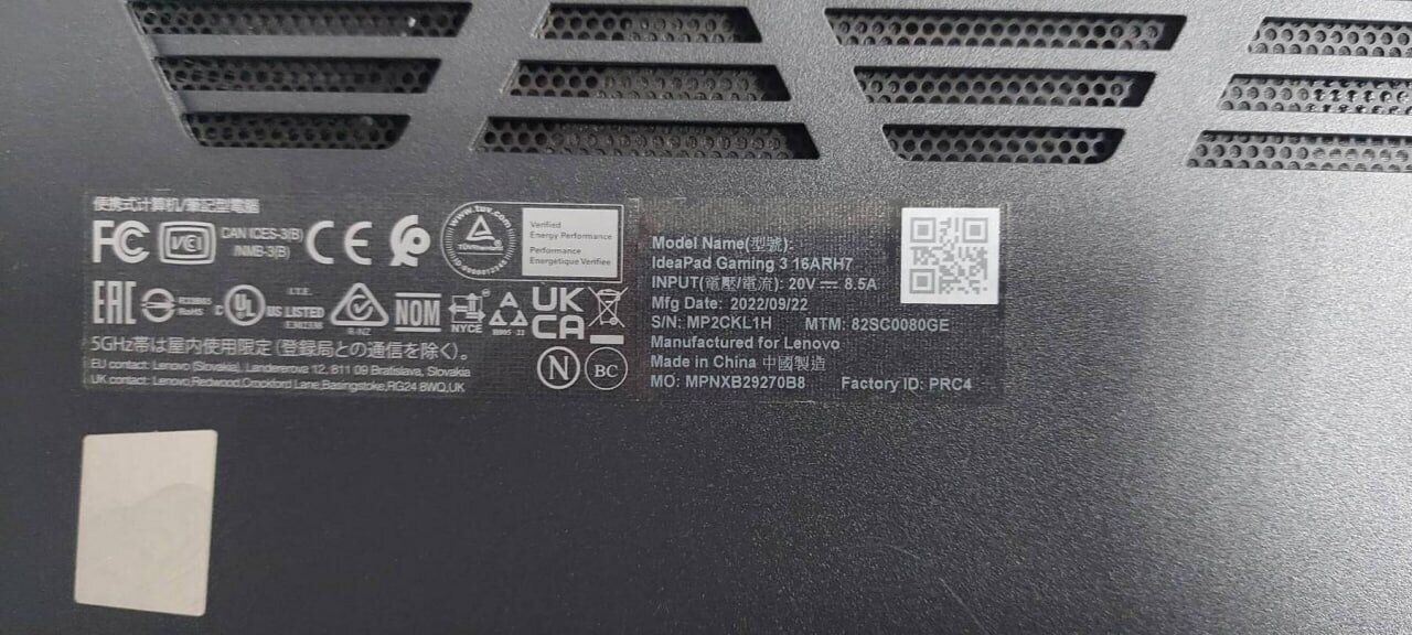 - Модель: Lenovo IdeaPad Gaming 3 16ARH7 Gray