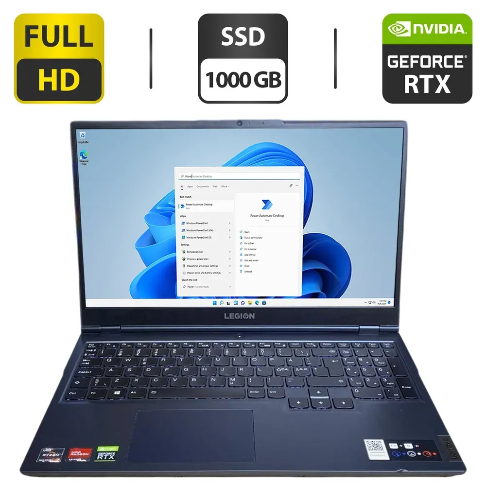 Ігровий ноутбук Lenovo Legion 5 / 16" (2560x1600) IPS / AMD Ryzen 7 5800H (8 (16) ядер по 3.2 - 4.4 GHz) / 16 GB DDR4 / 1000 GB SSD / nVidia GeForce RTX 3070, 8 GB GDDR6, 256-bit / WebCam б/в