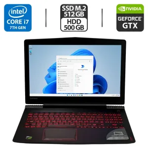 Ігровий ноутбук Lenovo Legion Y520-15IKBN / 15.6" (1920x1080) IPS / Intel Core i7-7700HQ (4 (8) ядра по 2.8 - 3.8 GHz) / 16 GB DDR4 / 512 GB SSD M.2 + 500 GB HDD / nVidia GeForce GTX 1050 Ti, 4 GB GDDR5, 128-bit / WebCam б/в
