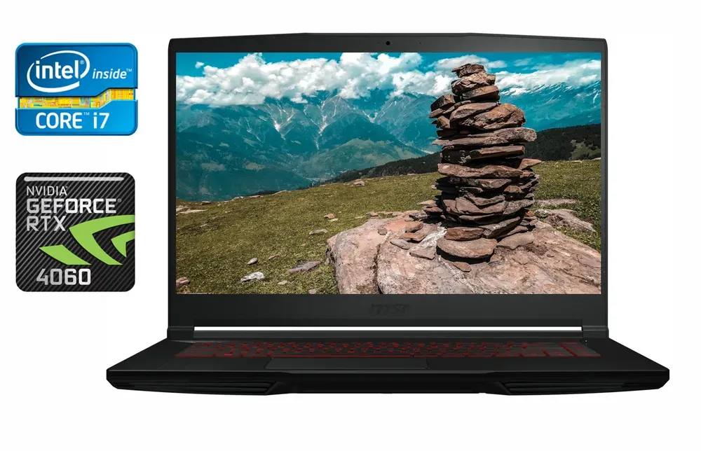 Ігровий ноутбук MSI GF63 12VF з екраном 15.6" (1920x1080) IPS на базі процесора Intel Core i7-12650H і оперативною пам'яттю 32 GB DDR4, оснащений дискретною відеокартою nVidia GeForce RTX 4060 8 GB для ігор і розваг