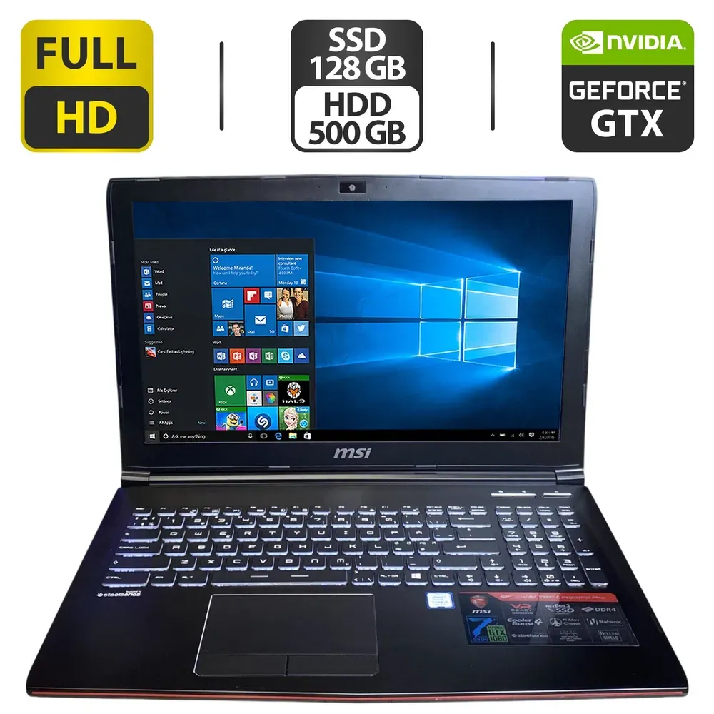 Ігровий ноутбук MSI GP62MVR 6RF Leopard Pro з екраном 15.6" (1920x1080) IPS на базі процесора Intel Core i7-7700HQ і дискретної відеокарти nVidia GeForce GTX 1060 3 GB для ігор і роботи з мультимедіа