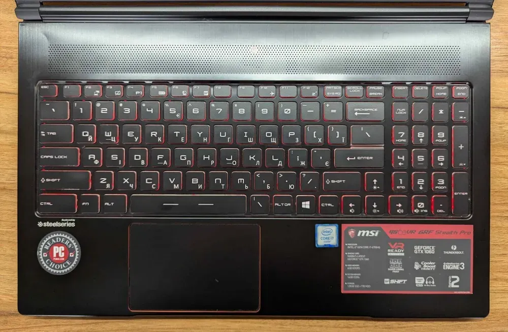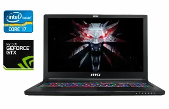Ігровий ноутбук MSI GS63 / 15.6" (1920x1080) IPS / Intel Core i7-6700HQ (4 (8) ядра по 2.6 - 3.5 GHz) / 16 GB DDR4 / 256 GB SSD + 1000 GB HDD / nVidia GeForce GTX 1060, 6 GB GDDR5, 192-bit / WebCam / Windows 10 б/в