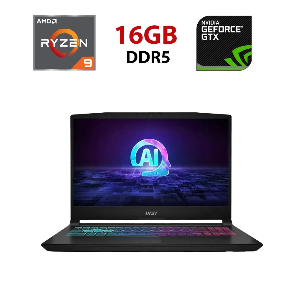 Ігровий ноутбук MSI Katana A15 AI B8VG-425NEU / 15.6" (1920x1080) IPS / AMD Ryzen 9 8945HS (8 (16) ядер по 4.0 – 5.2 GHz) / 32 GB DDR5 / 960 GB SSD / nVidia GeForce RTX 4070, 8 GB GDDR6, 128-bit / WebCam б/в