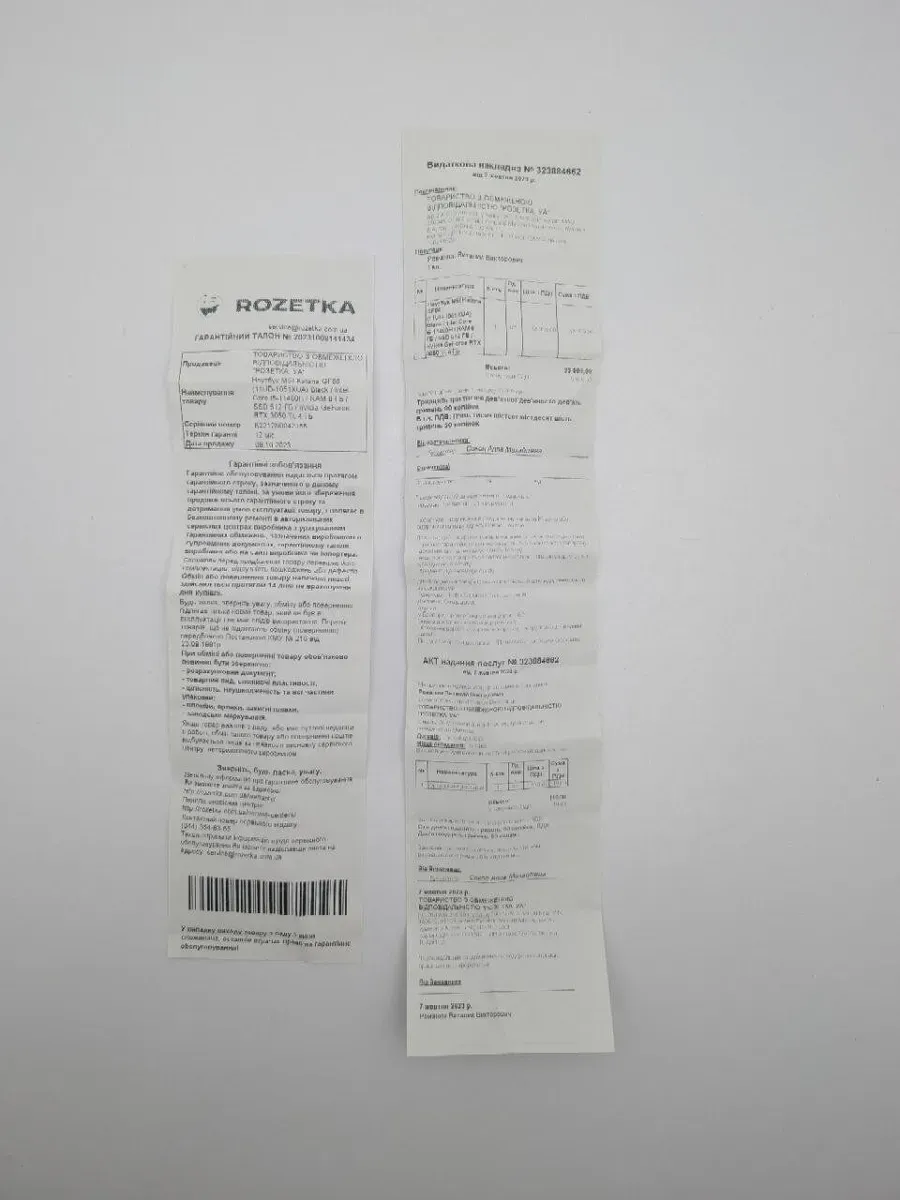 - Комплектація: ноутбук, зарядний пристрій, наклейки на клавіатуру.