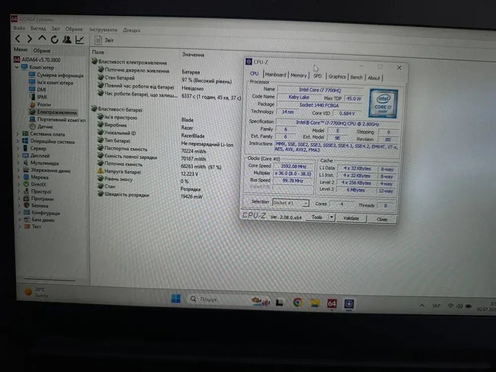 Процесор:Intel Core i7-7700HQ