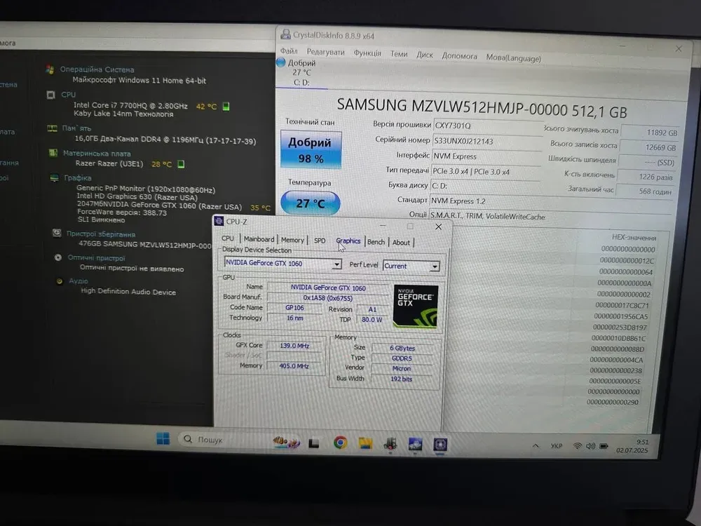 Дискретна відеокарта:GeForce GTX 1060