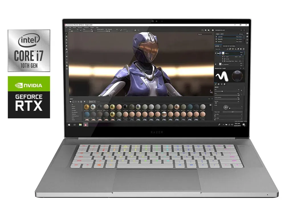 Ігровий ноутбук Razer Blade 15 RZ09-0328 Silver з екраном 15.6" (3840x2160) OLED на базі процесора Intel Core i7-10750H і дискретної відеокарти nVidia GeForce RTX 2070 Max-Q 8 GB для ігор і роботи з мультимедіа