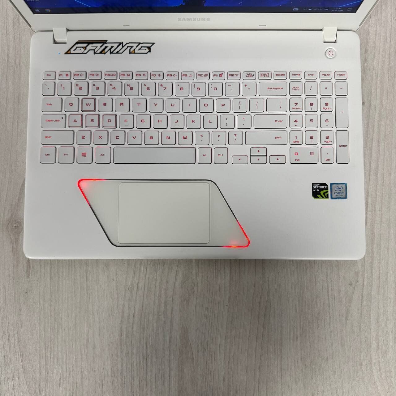 Ігровий ноутбук Samsung Odyssey NP800G5H-X02US White / 15.6" (1920x1080) IPS / Intel Core i7-7700HQ (4 (8) ядра по 2.8 - 3.8 GHz) / 8 GB DDR4 / 256 GB SSD NVMe / nVidia GeForce GTX 1050, 4 GB GDDR5, 128-bit / WebCam б/в
