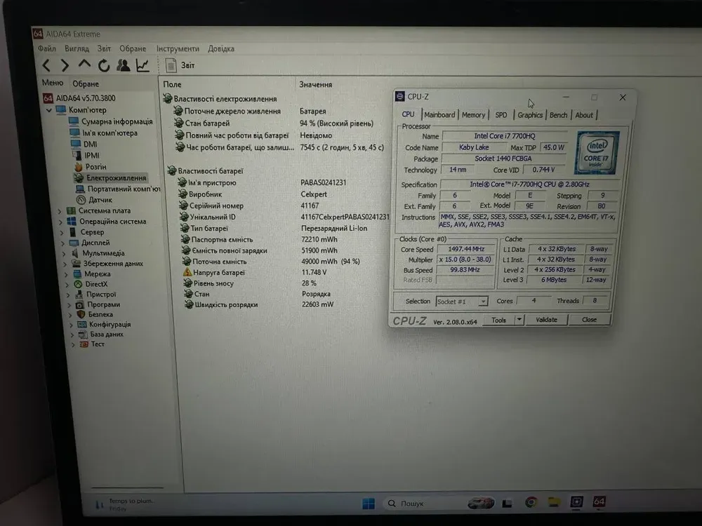 - Процесор: Intel Core i7-7700HQ (4 (8) ядра по 2.8 - 3.8 GHz), 6 MB Smart Cache