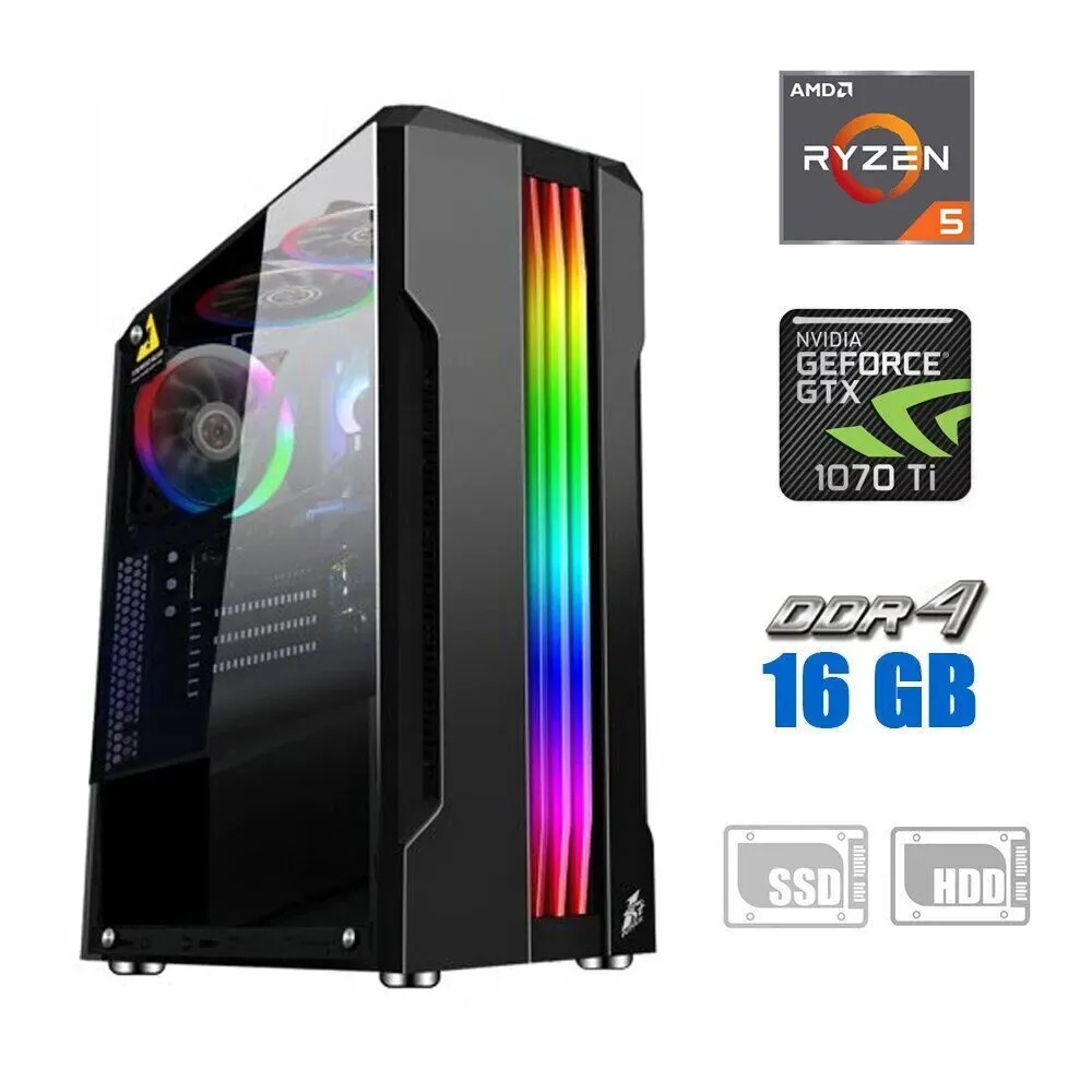 Ігровий ПК / AMD Ryzen 5 4500 (6 (12) ядер по 3.6 - 4.1 GHz) NEW / 16 GB DDR4 NEW / 120 GB SSD NEW + 500 GB HDD / nVidia GeForce GTX 1070 Ti, 8 GB GDDR5, 256-bit / 600W NEW б/в