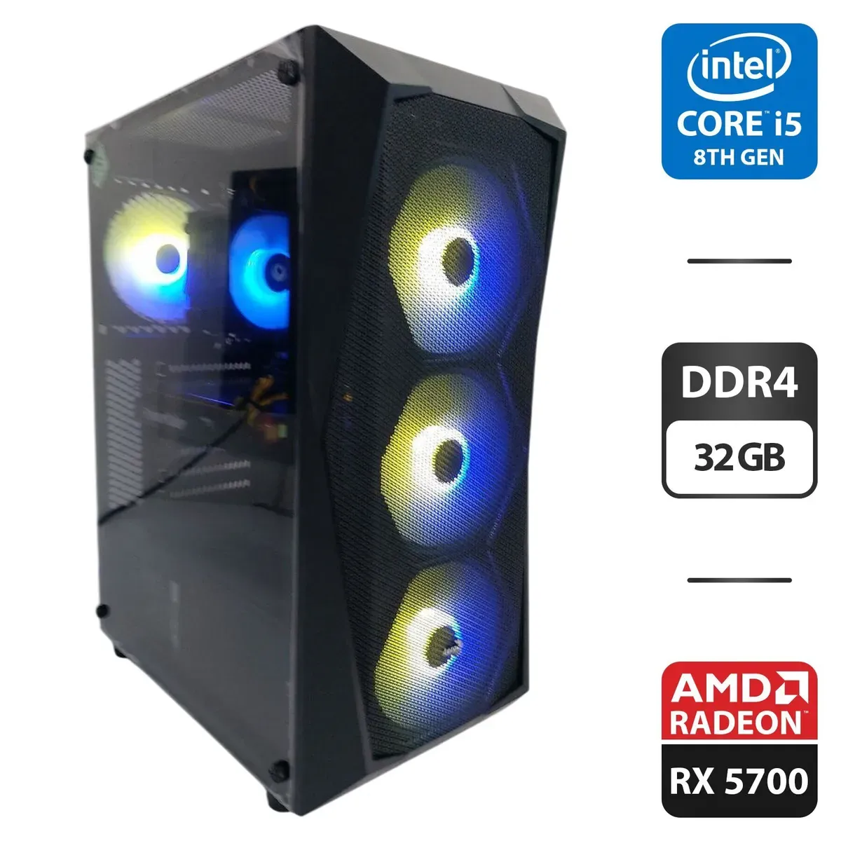 Ігровий ПК AeroCool PGS FALCON-A-BK-V1 FRGB Tower / Intel Core i5-8400 (6 ядер 2,8 - 4,0 ГГц) / 32 ГБ DDR4 / 256 ГБ M.2 SSD + 512 ГБ M.2 SSD + 500 ГБ HDD / AMD Radeon RX 5700, 8 ГБ GDDR6, 256-біт / 600 Вт б/в