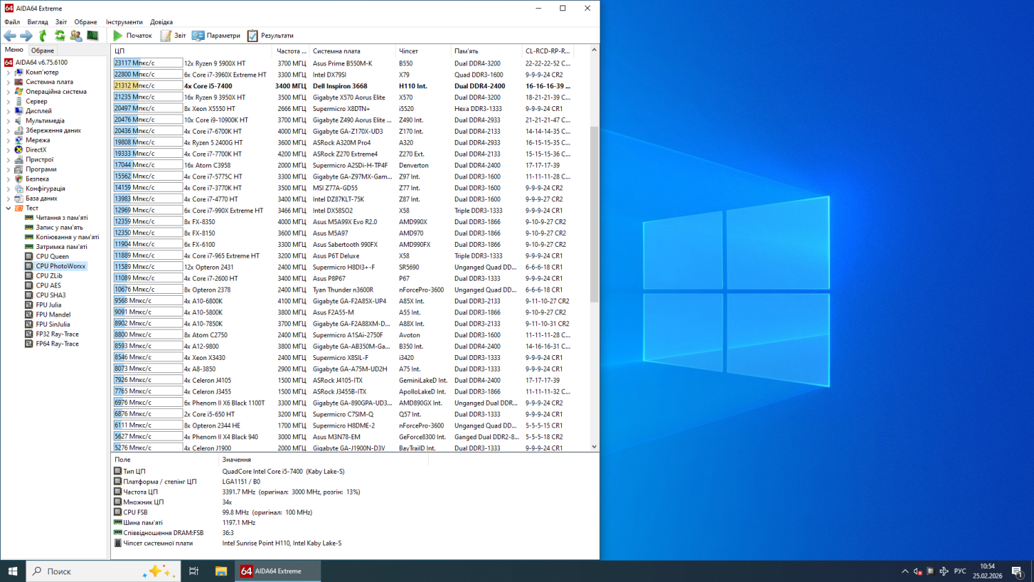 - Процесор: Intel Core i5-7400 (4 ядра по 3,0–3,5 ГГц); кеш-пам'ять 6 МБ