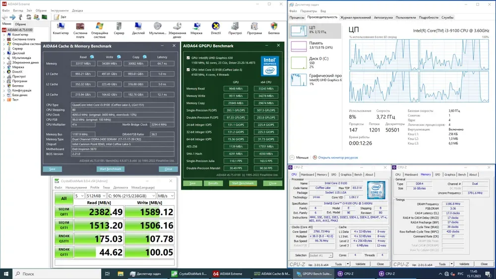 - Процесор: Intel Core i3-9100 (4 ядра по 3.6 - 4.2 GHz), 6 MB Smart Cache