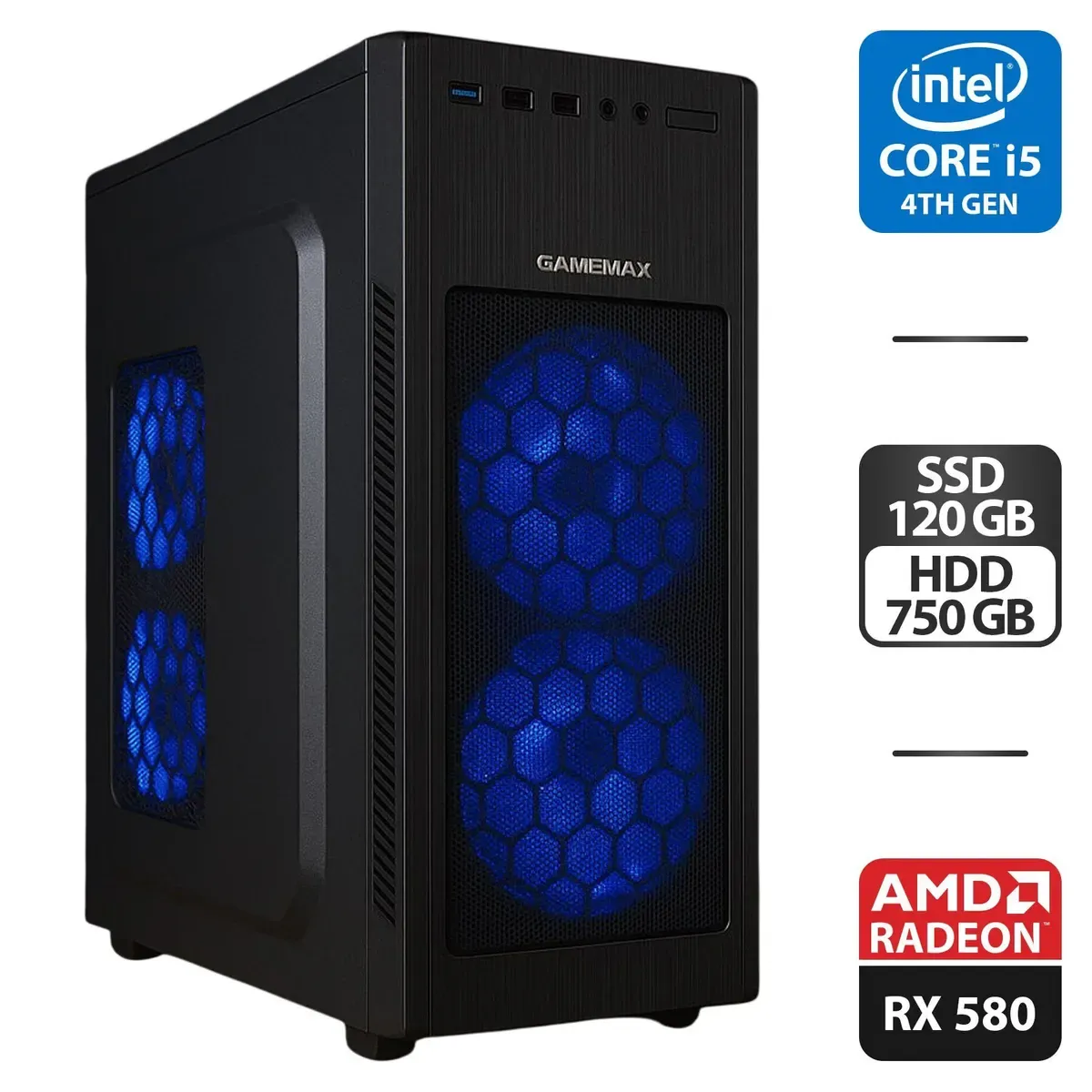 Ігровий ПК GameMax MT520-FAN Black Tower / Intel Core i5-4670 (4 ядра по 3,4 - 3,8 ГГц) / 16 ГБ DDR3 / 120 ГБ SSD + 750 ГБ HDD / AMD Radeon RX 580, 8 ГБ GDDR5, 256-біт / 500 Вт б/в