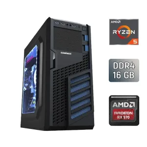 Ігровий ПК GameMax MT521-NP / AMD Ryzen 5 2600 (6 (12) ядер по 3.4 - 3.9 GHz) / 16 GB DDR4 / 128 GB SSD + 1000 GB HDD / AMD Radeon RX 570, 8 GB GDDR5, 256-bit / 500 W / Asus Prime A520M-K б/в