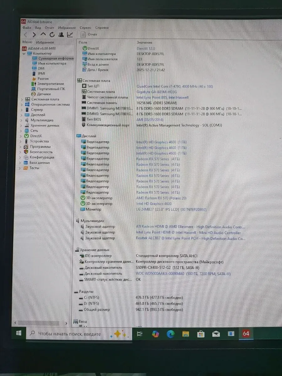 - Постійна пам'ять: 512 GB SSD GoodRam (нова комплектуюча) + 500 GB HDD WD Blue, 7200 об/хв