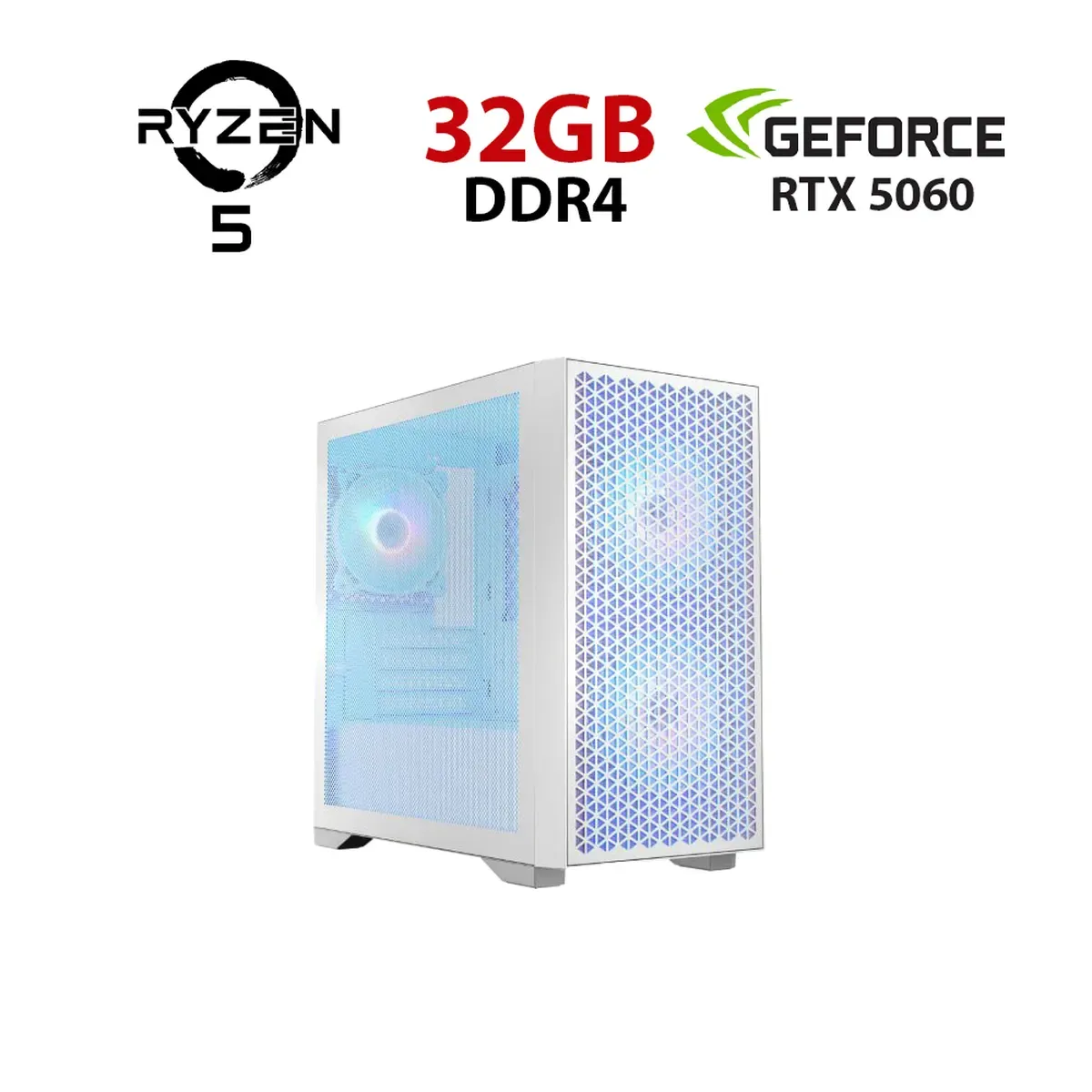 Ігровий ПК Ice DART PRO ARGB MINI WHITEK Tower / AMD Ryzen 5 8400F (6 (12) ядер по 4,2 - 4,7 ГГц) / 32 ГБ DDR5 / 960 ГБ SSD / nVidia GeForce RTX 5060, 8 ГБ GDDR7, 128-bit