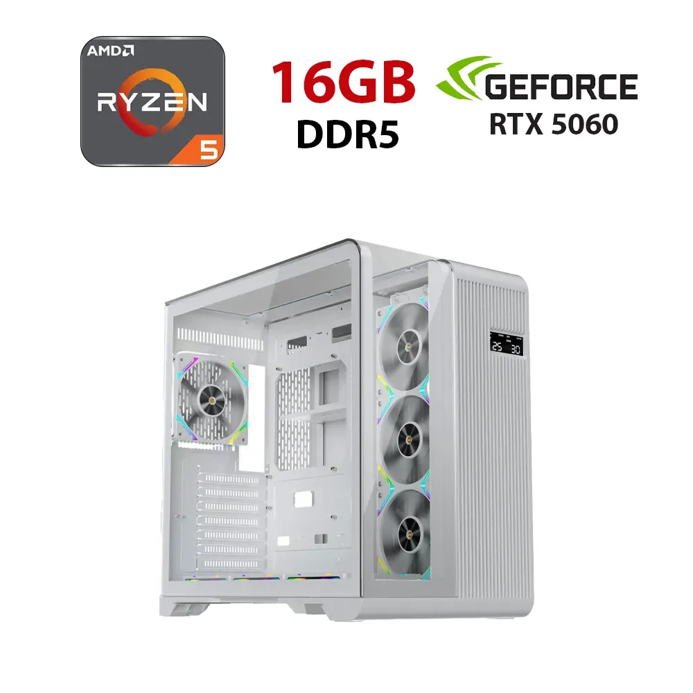 Ігровий ПК Ice RT7 White Tower / AMD Ryzen 5 8400F (6 (12) ядер по 4,2 - 4,7 ГГц) / 16 ГБ DDR5 / 480 ГБ SSD / nVidia GeForce RTX 5060, 8 ГБ GDDR7, 128-біт