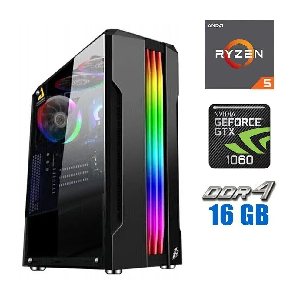 Ігровий ПК Tower AMD Ryzen 5 4500 (6(12) ядер по 3.6-4.1 GHz) NEW / 16GB DDR4 NEW / 480GB SSD NEW + 500GB HDD / GeForce GTX 1060, 6GB GDDR5, 192-bit / 500W NEW б/в