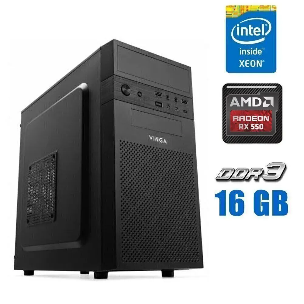 Ігровий ПК Vinga CS112B Tower NEW на базі 4-ядерного процесора Intel Xeon E3-1240 v3 та дискретною відеокартою AMD Radeon RX 550 2 GB для ігор та роботи з мультимедіа