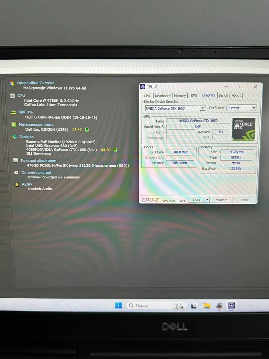 - Графіка: дискретна nVidia GeForce GTX 1650, 4 GB GDDR6, 128-bit