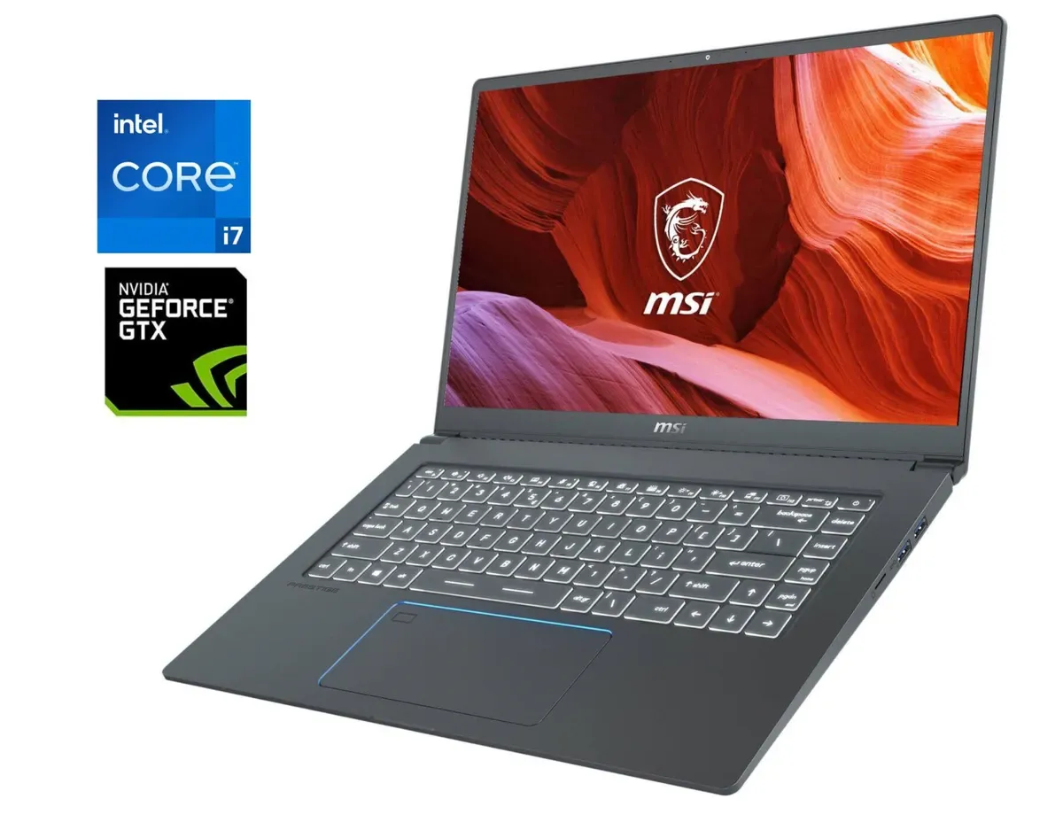 Ігровий ультрабук MSI Prestige 15 A11SCX / 15.6" (1920x1080) IPS / Intel Core i7-1185G7 (4 (8) ядра по 3.0 - 4.8 GHz) / 16 GB DDR4 / 512 GB SSD / nVidia GeForce GTX 1650 Max-Q, 4 GB GDDR5, 128-bit / WebCam / Win 11 Home б/в